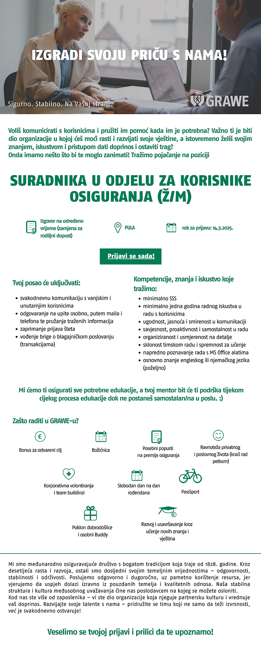 Suradnik u odjelu za korisnike osiguranja (ž/m)